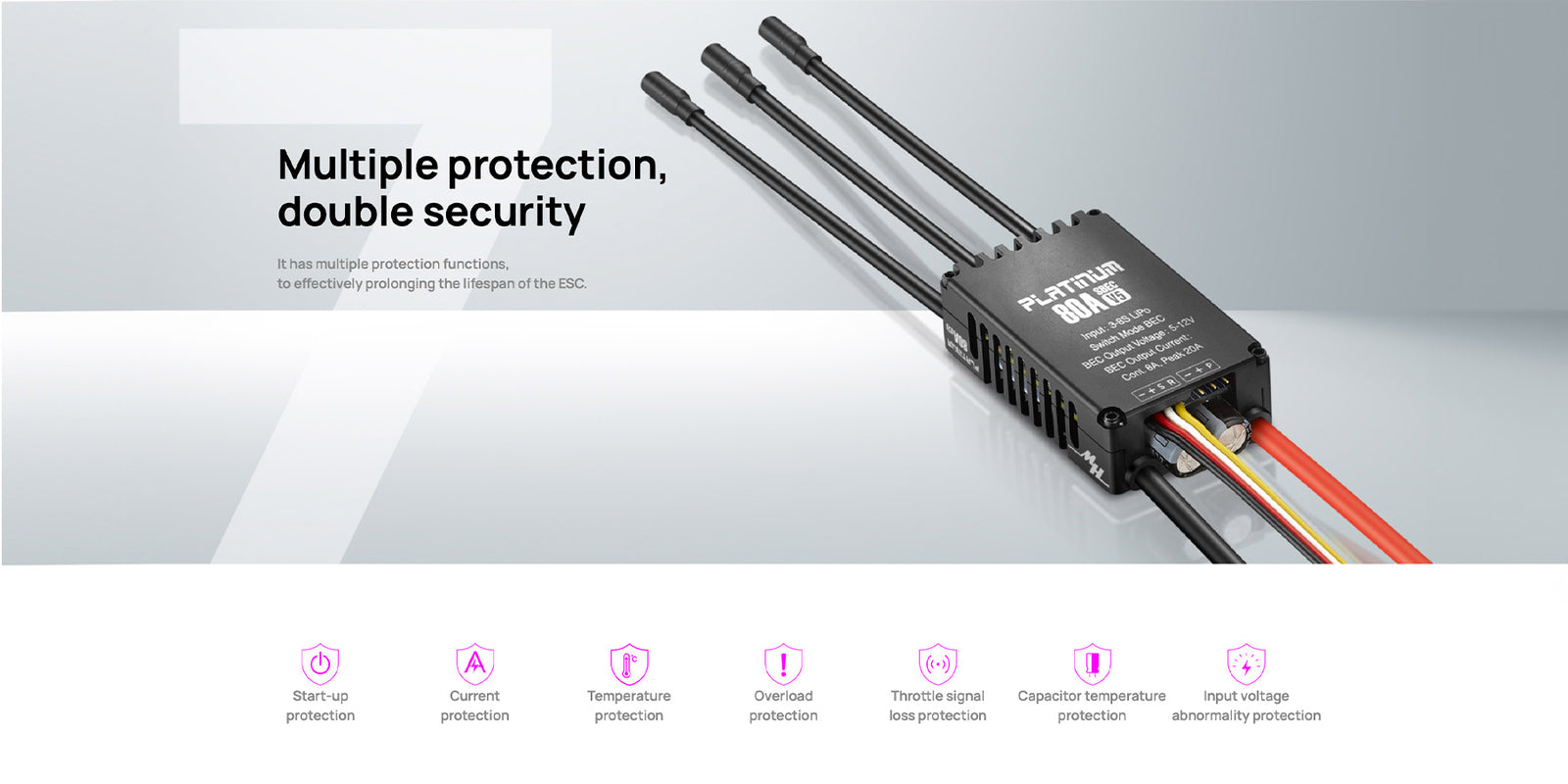 - Multiple protections, Extra Safety: It has multiple protection functions, to effectively prolonging the lifespan of the ESC.